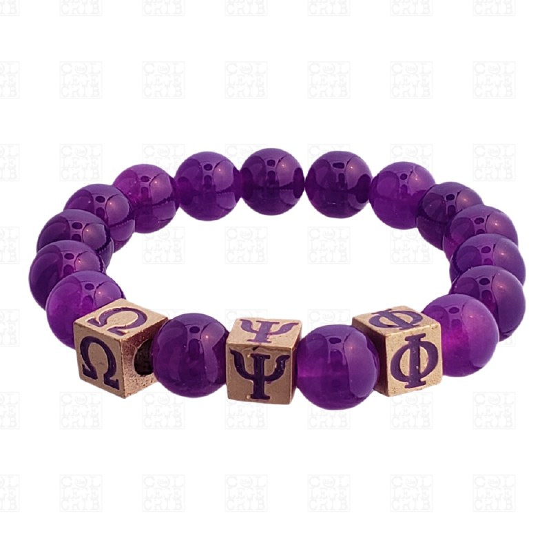 Handcrafted and handmade 8mm glass beads bracelet with elasticated thread for an easy and comfortable fit. Bracelet is color cordinated to match the organization colors and has metal block organzation letters.