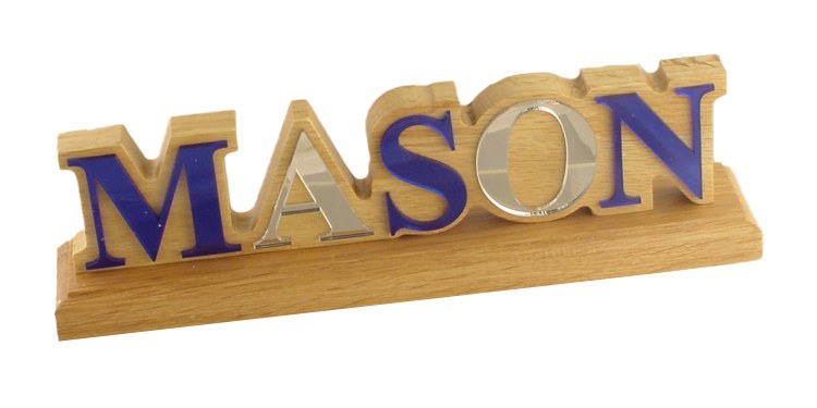 Large wooden desk topper with colored acrylic mirror/reflective organization Greek letters. Great look for the home or office space. Approx. Dimensions: 11 inches wide 5 inches tall 2 inches thick