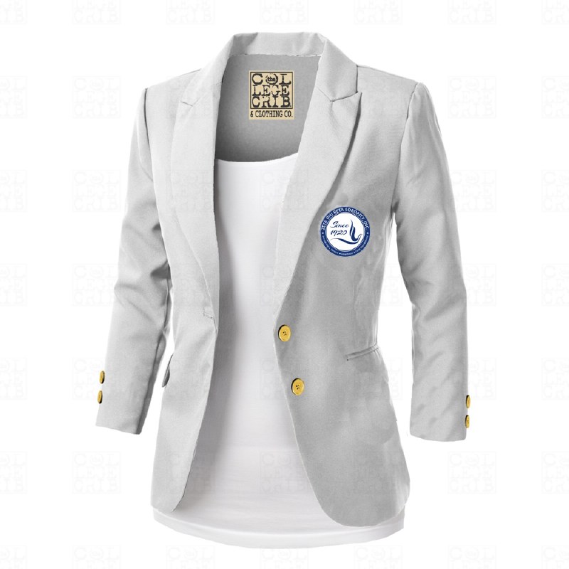 Our sorority and fraternity Greek Polyester UltraLux Blazer are a durable, stylish club blazer constructed with a signature washable 100% polyester fabric. Each UltraLux Blazer features lower patch pockets with flaps, a top welt, 3 inside pockets, back vents, strong full lining & 2 gold-tone buttons treated with Ascolite Button Security process. No more lost buttons!